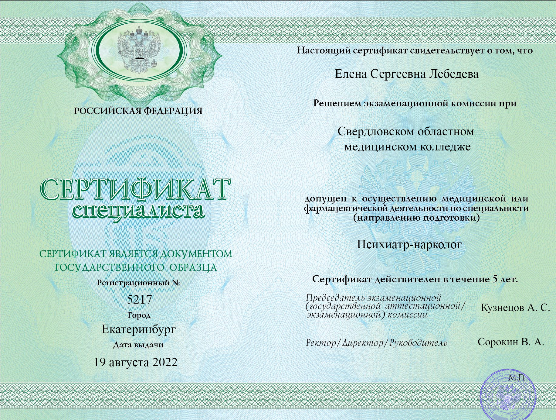 Елена Сергеевна Лебедева врач нарколог клиники доктора Стукаловой в Змеиногорске